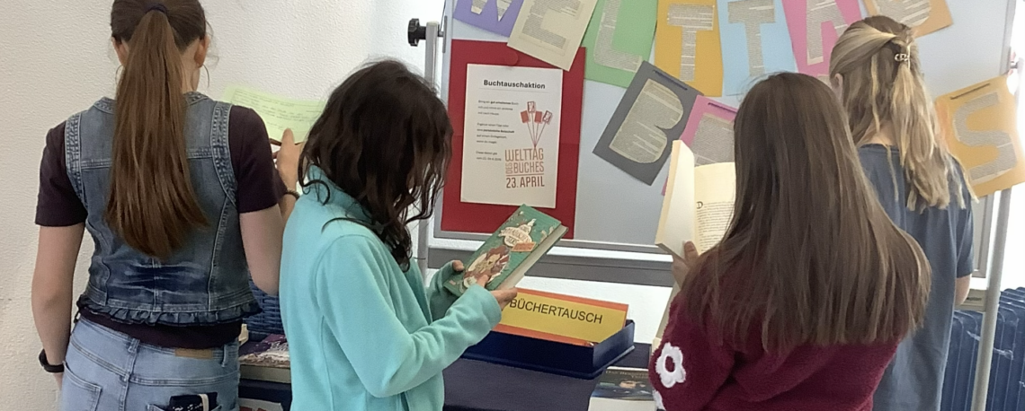 Rund um den 23. April 2026 feierten wir an unserer Schule den Welttag des Buches mit einer bunten Büchertauschaktion. Bücher wechselten die Besitzer*innen und weckten bei Schüler*innen, Lehrkräften und Mitarbeiter*innen die Lesefreude.